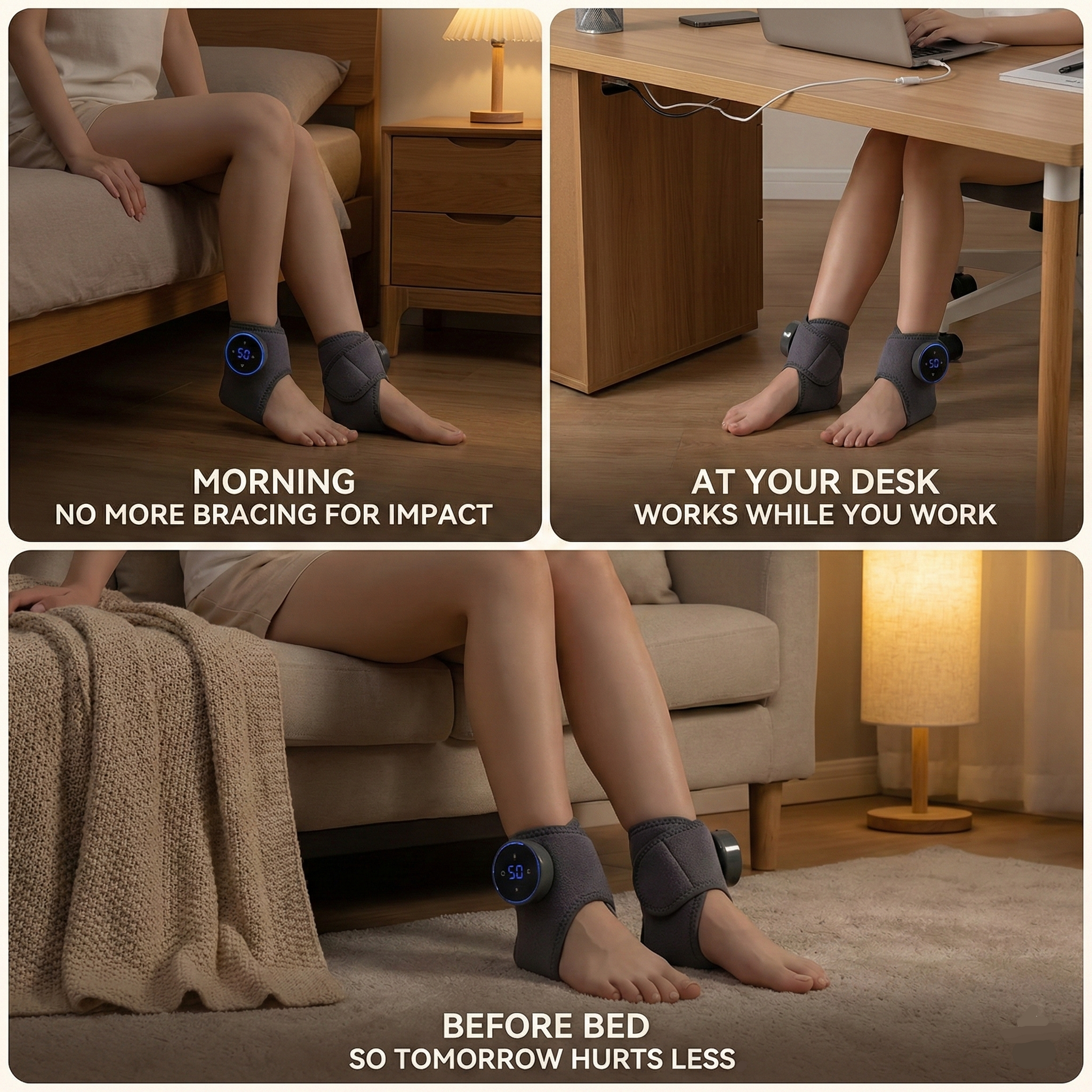 my thing was sleep. waking up at 3am with my ankles so locked I couldn't rotate them. started using these before bed and I'm sleeping through now. the heat shuts off on its own after 15 min. I fall asleep with them on sometimes lol
